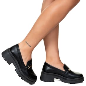 Sapato Mocassim Feminino Tratorado Conforto Moderno Estilo Shoes - 36 - Preto