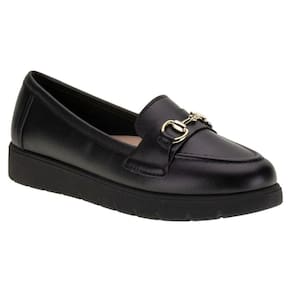 Sapato Mocassim Moleca Casual Conforto Detalhe Metalizado Anabela Preto 346945