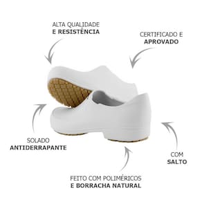 Indicação: Indicado para profissionais que necessitam de segurança e conforto em ambientes de trabalho que exigem proteção contra líquidos e superfícies escorregadias.