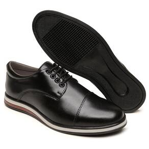Sapato Oxford Casual Masculino Cadarço Solado Borracha - 44 - Preto