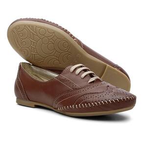 Sapato Oxford Couro Feminino Cadarço Brogue Conforto Estilo - 40 - Marrom
