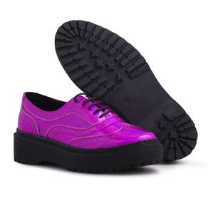 Sapato Oxford Feminino Tratorado Metalizado Clássico - 33 - Pink