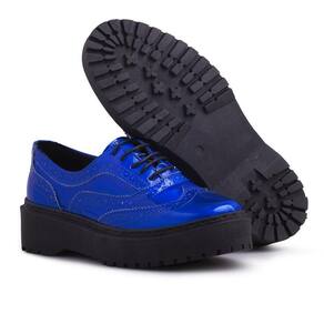 Sapato Oxford Feminino Tratorado Metalizado Clássico - 38 - Azul Claro