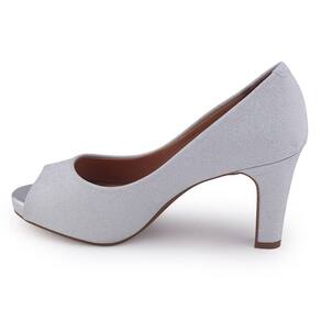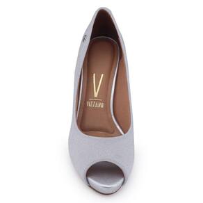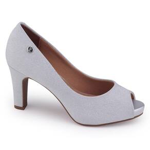 O Sapato Peep Toe Vizzano 1840.300 é um sapato confortável e com um salto grosso com sustentação para calçar o dia todo. Seu cabedal é fabricado em material sintético e acabamento em glitter, é um modelo de bico aberto e arredondado, na lateral traz como detalhe um broche da marca, seu interior é todo revestido em material têxtil e sua palmilha é fixa em material sintético acolchoado tornando o sapato confortável. O seu salto médio, revestido pelo mesmo material do calçado e tem 10cm de altura, já a meia pata frontal possui 2,5cm de altura, o solado apresenta frisos para maior segurança.