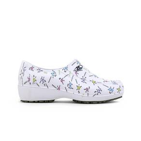 O Sapato Lady Works Soft Works foi desenvolvido para profissionais que buscam conforto, beleza e segurança no seu dia a dia. Ideal para profissionais de beleza, secretárias, recepcionistas, professores, médicos, dentistas, entre outras. O Cabedal é confeccionado em EVA (Etil Vinil Acetato), um material super leve, que permite extremo conforto e alta absorção de impacto. Palmilha em EVA, com tecido na parte superior e contém antimicrobiano que atenua o odor nos pés. O Solado é composto por uma borracha especial, com Tecnologia Super Grip resistente ao escorregamento, fechado na parte superior e traseira, atende plenamente as exigências da Norma NR-32 da Segurança e Saúde dos Trabalhadores em Serviços de Saúde. Possui o selo de conforto emitido pelo IBTeC (Instituto Brasileiro de Tecnologia do Couro, Calçados e Artefatos), um órgão brasileiro que realiza testes de conforto nos calçados, conferindo-lhes um certificado. contém antimicrobiano e não contém ftalatos. CERTIFICADO DE APROVAÇÃO - CA N 40.293