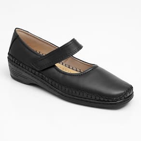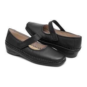 Sapato Sapatilha Feminin Couro Preto Conforto Ortopédico - 33 - Preto