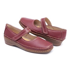 Sapato Sapatilha Feminin Couro Vinho Conforto Ortopédico - Vinho - 34