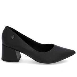 Scarpin Feminino com Salto Bloco Usaflex. Cabedal em couro preto. O modelo possui tecnologia +Bem-Estar, com espumas posicionadas em pontos estratégicos na palmilha garantindo conforto e suavidade na pisada. O bico fino e salto médio de 5,5 cm trazem uma elegância ao sapato.