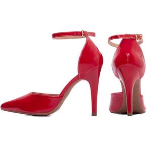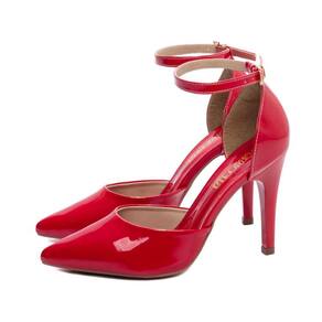 Palmilha: Confort com 8 mm de Espessura, Espuma em EVA, Revestida com Verniz Vermelho e Taloneira em Verniz Vermelho