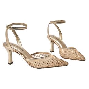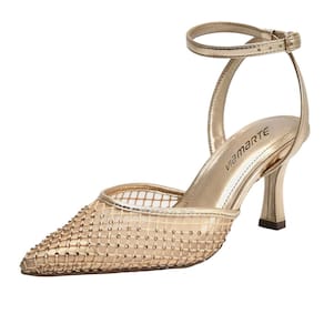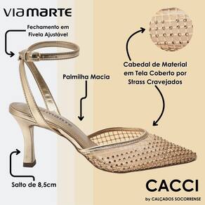 O scarpin feminino da Via Marte é um calçado que se destaca pela elegância. Com salto médio e bico fino, oferece um visual sofisticado. Seu design combina calcanhar aberto e frente fechada com material cravejado, criando uma aparência refinada. Tiras delicadas envolvem a parte exposta do pé, enquanto o fechamento prático na lateral garante um ajuste perfeito. Este modelo une estilo e conforto de maneira impecável.