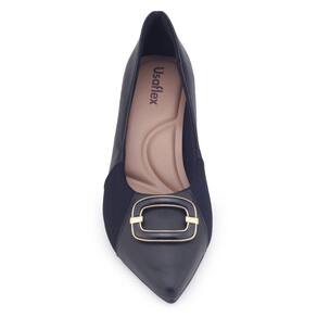 O Sapato Scarpin Usaflex MM0503001 é um modelo clássico, este sapato é confortável conta com um salto grosso em modelo bloco com sustentação para calçar o dia todo. Seu cabedal é fabricado em material sintético de acabamento liso, tem como destaque um aplique no peito do pé e o bico com a ponta levemente retangular, seu interior é todo revestido em material têxtil e sua palmilha é fixa em material sintético acolchoado tornando o sapato confortável. O seu salto bloco tem 5,5cm de altura, o solado apresenta frisos para maior segurança.