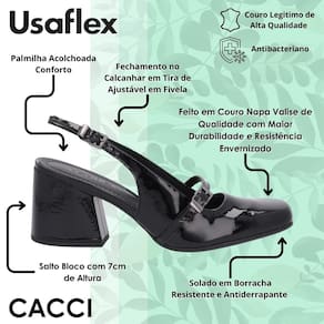 Versátil e refinado, esse slingback é a peça curinga que transita entre o clássico e o moderno, combinando com diferentes ocasiões. Aposte no conforto e na sofisticação da Usaflex e sinta a diferença!