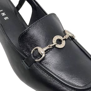 O modelo em Couro Cristal Lia Line Slingback quase sempre fechado na dianteira, mas aberto atrás recebe esse nome pela tira elástica (ou afivelada) na parte posterior facilitando o calce e se encaixando perfeitamente aos pés e que envolve o calcanhar. Possui peça metalizada com strass no cabedal trazendo todo o charme para o calçado.