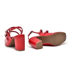 Esse slingback com solado que possui um salto alto grosso e bico quadrado, proporcionando não apenas estilo, mas também conforto ao caminhar.