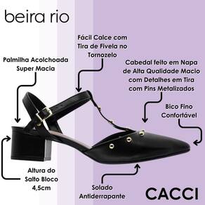 O salto bloco de 4,5 cm equilibra altura e estabilidade, ideal para rotinas intensas sem abrir mão do estilo. Com solado antiderrapante, este modelo combina com produções formais ou despojadas, sendo um verdadeiro curinga no guarda-roupa feminino.