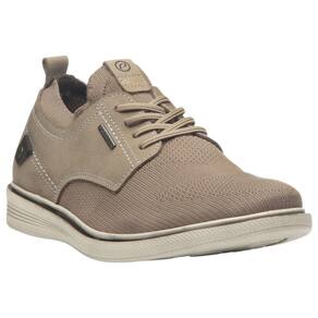 Sapato Pegada com tecnologia Knit, com elasticidade que se adapta ao pé, proporcionando extremo conforto e transpiração aos pés. A palmilha é confeccionada em material macio e confortável. Possui um solado leve e flexível com tecnologia AMORTECH de amortecimento por bolha de ar na região do calcanhar. Cabedal confeccionado em material têxtil na parte frontal e couro na parte traseira. Ajuste feito com elástico.