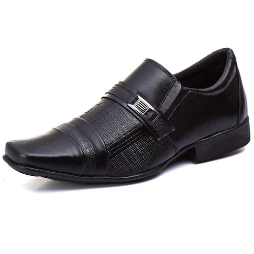 Sapato Social Bico Quadrado Masculino Com Texturas Palmilha EVA Conforto Ajuste Elastico - 43 - Preto
