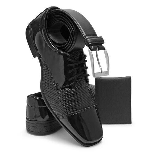 Sapato Social Com Cinto e Uma Carteira Estilosos Moda Chic Confortável - 37 - Preto