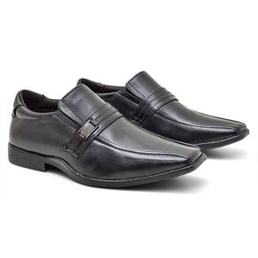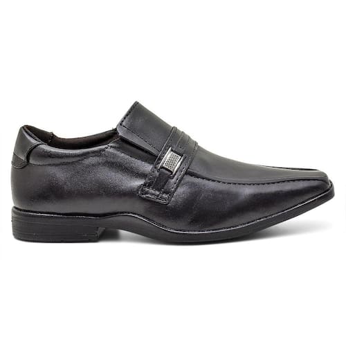 Sapato Social Infantil Kids Preto Couro Masculino Elastico Elegante Fino Fork - 29 - Preto