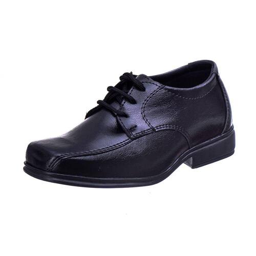 Sapato Social Infantil Menino Bico Quadrado Ajuste Cadarço Calce Facil Pajem Casamento - 33 - Preto