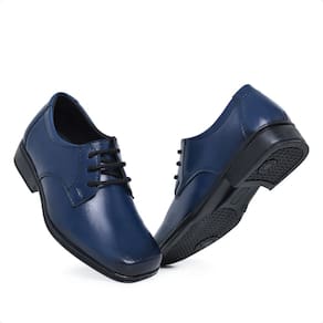 Sapato Social Infantil Menino Bico Quadrado Cadarço Solado Borracha Palmilha EVA Interno Forrado - Azul Marinho - 22