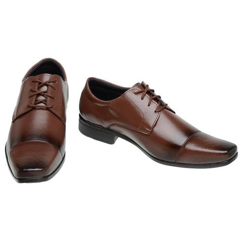 Sapato Social Masculino Cadarço Antiderrapante Bico Quadrado - 37 - Marrom