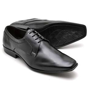 Sapato Social Masculino Couro Cadarço Bico Quadrado Casual - 38 - Preto