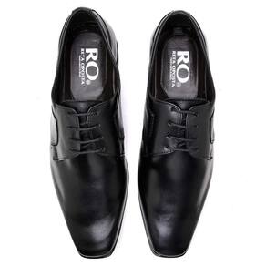 Sapato Social Masculino Couro Cadarço Bico Quadrado Casual - 40 - Preto