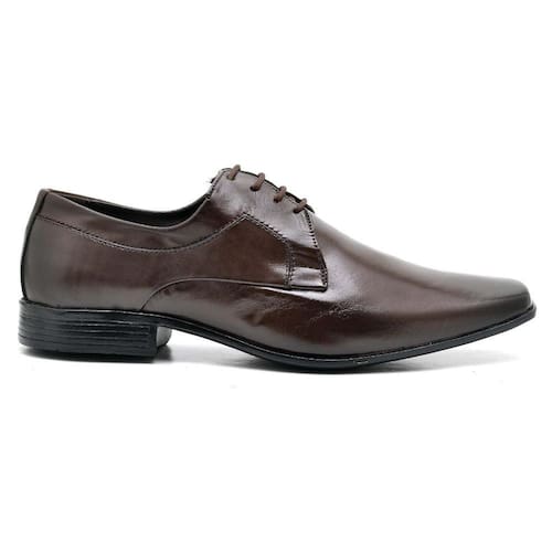 Sapato Social Masculino Couro Cadarço Bico Quadrado Casual - 39 - Marrom Chocolate