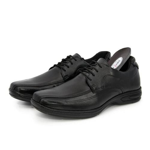Sapato Social Masculino Couro Cadarço Bico Quadrado Casual - 44 - Preto