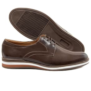 Calçado masculino fabricado em couro soft, com solado de TR Café com listras em preto e bege. Forração e palmilhas em Couro vacum bege. palmilha acolchoada com espuma e EVA. CANO: Cano baixo, social.