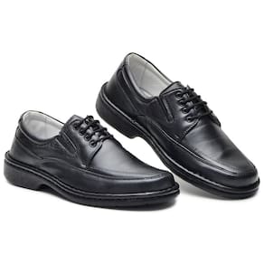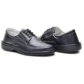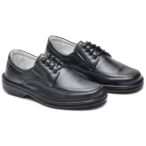 Sapato Social Masculino Couro Confortável Cadarço Blaqueado - 43 - Preto