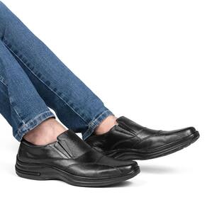 Sapato Social Masculino Couro Confortável Elástico Elegante - 39 - Preto