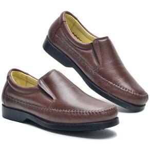 Sapato Social Masculino Couro Costurado Confortável Moderno - 36 - Marrom