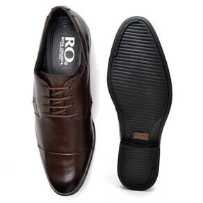 Sapato Social Masculino Couro Derby Cano Curto Confortável - 40 - Marrom Chocolate