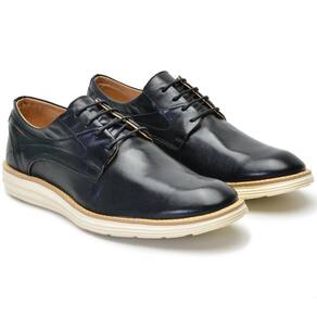 Sapato Social Masculino Oxford Couro Confortável Cadarço - 38 - Preto