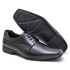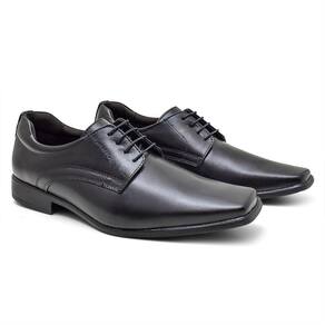 Sapato Social Preto 100% Couro Conforto Masculino Cadarço Reuniao Elegante Fork - 40 - Preto