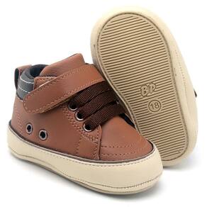 Sapato Tênis Bebe Baby Conforto Primeiros Cano Alto Marrom - 15 - Marrom