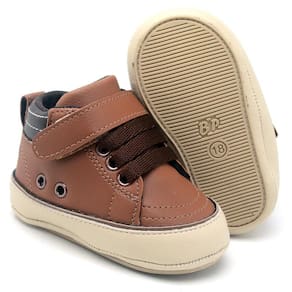 Sapato Tênis Bebe Baby Conforto Primeiros Passos Cano Alto Marrom - 19 - Marrom