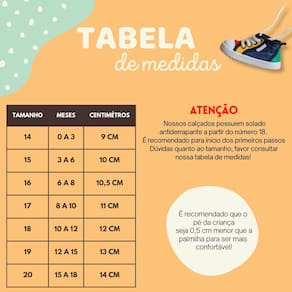 OS TAMANHOS 14 AO 17 NÃO POSSUEM SOLA ANTIDERRAPANTE, POIS OS BEBES AINDA NÃO ESTÃO NA FASE DE ANDAR.OS TAMANHOS 18 AO 20 JÁ POSSUEM SOLA ANTIDERRAPANTE, POIS JÁ ENQUADRAM NO TAMANHO QUE AS CRIANÇAS ESTÃO DANDO OS PRIMEIROS PASSINHOS.