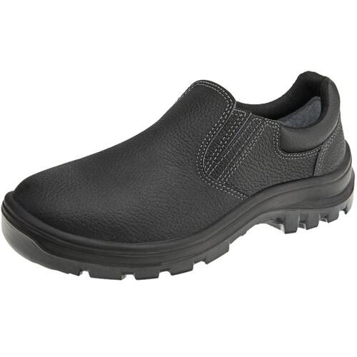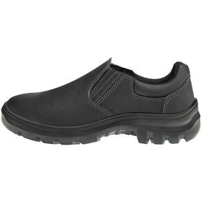 O Sapato Vulcaflex é fabricado em couro preto com colarinho soft acolchoado e fechamento em elástico lateral. A biqueira, disponível em polipropileno, protege contra impactos, enquanto a palmilha em EVA e o solado em PU bidensidade com absorção de impacto garantem conforto e segurança.