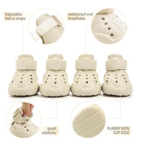 As sandálias para cães para pavimento quente podem ser colocadas e removidas com muita facilidade. Tecido macio e solas resistentes protegerão seu cão de lesões. O peso mais leve do que os sapatos normais para cães fazem com que seu cão sinta que seus pés estão gentilmente abraçados por esses sapatos. O design exclusivo torna este sapato para cães de estimação mais respirável e fácil de limpar. - Tamanho 7: (C x L x A). Escolha o tamanho certo para o seu cão de acordo com as medidas. O tamanho que fornecemos é da palmilha interna. - Qualidade: as botas para cães têm uma sola robusta e materiais de borracha de alta qualidade para garantir que estejam prontas para sua aventura. - Robusto: a sola antiderrapante resistente das botas para cães oferece estabilidade e tração, proteção contra espinhos afiados e pavimento quente. - Seguro e ajustável: fácil de colocar/tirar. Estes sapatos para cães se expandem com uma ampla abertura de costura dividida e duas tiras ajustáveis e refletivas para garantir um ajuste firme e também deixam seu cão seguro à noite. - Atendimento ao cliente amigável: nosso tamanho é baseado no diâmetro interno do sapato e é medido à mão. Considere um pequeno erro de tamanho. Você pode entrar em contato conosco com qualquer dúvida sobre os produtos e serviços a qualquer momento.