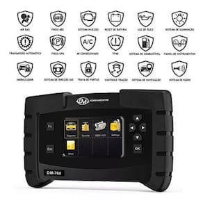 Scanner automotivo profissional - português com ajuste flex O dm-760 scanner profissional, foi desenvolvido para técnicos, reparadores, profissionais e entusiastas da área automotiva que desejam diagnosticar os sistemas de injeção eletrônica, carroceria, transmissão automática, direção elétrica, abs, airbag, painel, regeneração de filtro de particulas diesel, freio de estacionamento elétrico, reset de luz de óleo e serviço e outros, de veículos de passeio e utilitários diesel leve. Com uma ótima ergonomia, design moderno e elegante. Novidade: agora com nova função de ajuste flex Possue função de diagnóstico e reset de falhas no sistema embarcado do veículo. Diagnóstico específico de montadora ou padronizado Compatível com funções de montadoras mundiais, tais como: Acura, alfa romeo, audi, bmw, byd, chana, chery, grupo chrysler, citroen, daewoo, daihatsu, fiat, ford, geely, general motors, great wall, holden, honda, hyundai, infiniti, isuzu, jaguar, kia, lancia, land rover, lexus, lifan, mazda, mitsubishi, mercedes benz, mini, nissan, opel, perodua, peugeot, porsche, proton, renault, saab, seat, skoda, smart, ssangyong, subaru, suzuki, toyota, vauxhall, volvo e vw. Sistemas que podem ser analisados: Injeção eletrônica, abs, airbag, controle de estabilidade, ar condicionado, painel de instrumento, câmbio automático, carroceria, imobilizador, conforto, sistema de carroceria e sistema de climatização. E também diagnóstico padronizado, que acessa o diagnóstico do sistema de injeção eletrônica de todos os veículos mundiais da seguinte forma: Eua a partir de 1996 (todos); Canada a partir de 1998 (todos); Europa a partir de 2001 (otto); Europa a partir de 2003 (diesel); Israel, perú e japão 2003; Austrália e nova zelândia 2006 (otto); Hong kong 2006 (todos) Austrália e nova zelândia 2007 (diesel); Brasil (veículos desenvolvidos a partir de 2007) Korea e méxico 2007 (todos); Argentina e taiwan 2008 (todos); Brasil 2010 (todos); China 2010 (otto); Rússia 2010 (todos); China 2011 (diesel); Índia e tailândia 2013 (todos); Princípais funções no sistema de injeção eletrônica: Ler código de falhas; Resetar código de falhas; Análise e verificação de vários sensores do motor em tempo real como por exemplo rpm, temperatura do motor, map, sonda lambda, tempo de injeção, permitindo uma análise rápida do funcionamento do motor, inclusive com a opção de visualização gráfica com até 2 parâmetros; Leitura de informações da ecu, como número do chassi e versão de software; Possibilidade de teste de componente, como atuadores (ventoinha, bicos injetores etc.); Funções avançadas: Abs; Ajuste de ângulo de direção elétrica; Ar condicionado; Codificação de injetores; Controle de estabilidade; Controle de tração; Corpo de borboleta eletrônico; Diagnóstico em câmbio automático; Freio de estacionamento; Gerenciamento de bateria; Imobilizador; Luz de óleo e serviço; Monitoramento da pressão dos pneus; Painel de instrumentos; Regeneração filtro de partículas; Todas as funçoes descritas acima, podem sofrer variações de acordo com a montadora a ser diagnosticada, podendo não estar disponível ou necessitar de cabos opcionais. Itens inclusos: 1 interface de comunicação dm-760 1 cabo principal de comunicação; 1 conector padrão obd 16 pinos; 1 cabo usb para atualizações; 1 case te proteção e transporte; Marca: dm ferramentas
