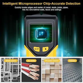 Scanner de parede Stud Finder – Detector de pinos 5 em 1 com chip de microprocessador inteligente e tela LCD HD, localizadores de feixe de sensor para o centro e a borda do tubo de vigas de metal de fio CA de madeira - Preciso e rápido: o localizador de pinos de parede adota um chip de microsensor inteligente com a mais alta sensibilidade que pode encontrar com precisão e rapidez bordas e centro de metal, vigas, tubos e fios AC ativos atrás de paredes, pisos e tetos. A detecção rápida economiza tempo e esforço dos usuários, facilitando a conclusão de tarefas. Deve ser o melhor presente para profissionais, proprietários de casas e entusiastas de bricolage - Alta visibilidade e visor LCD: nosso scanner de pinos está equipado com um visor LCD brilhante e retroiluminado que mostra o centro, a borda e a localização dos pinos detectados, bem como o status da bateria. Junto com a exibição visual, nosso localizador de pinos também fornece alertas de áudio e um som de bipe para ajudar a guiá-lo para a localização exata do pino. A tela abrangente facilita o uso de qualquer pessoa, mesmo em ambientes com pouca luz. É o presente perfeito para qualquer entusiasta de bricolage - Presentes exclusivos para reforma da casa: nosso localizador de pinos é um presente prático e útil para homens ou mulheres que desejam pendurar prateleiras ou outros objetos pesados na parede sem danificar a superfície. Além disso, é útil para detectar fios e tubos ativos atrás das paredes, evitando acidentes e reparos caros. Oferecer um localizador de pinos como um presente exclusivo mostra que você se preocupa com segurança, eficiência e praticidade, tornando-o um presente atencioso e valioso - Vários modos de digitalização: nosso localizador de pinos de madeira oferece vários modos de digitalização, incluindo varredura de pinos, varredura profunda e varredura de metal, dando a você a capacidade de detectar vários materiais e profundidades. O modo de varredura do pino encontra o centro do pino, enquanto o modo de varredura profunda detecta a largura de objetos maiores, como tubos e fios. Por fim, o modo de varredura de metal detecta a presença de metal, útil para encontrar encanamento atrás das paredes. Nesta temporada de férias, dê o presente de paz de espírito com um localizador elétrico de pinos - Uso amplo: nosso detector de madeira para parede é uma ferramenta versátil, confiável e que pode tornar qualquer trabalho mais eficiente e eficaz. Este detector de pinos localiza rapidamente fios de madeira, metal e CA escondidos nas paredes, pisos e tetos da casa. Ajuda você a evitar perigos ao pendurar e instalar suportes de TV, molduras para fotos, armários de parede, prateleiras de garagem, prateleiras, puxadores de banheiro e outras decorações. Dê o presente de conveniência e conforto com este prático gadget