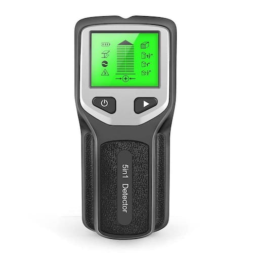 Scanner display lcd detector metal cobre madeira fio 5 em 1 Características Detector de metais, madeira e elétrica não detecta pvc Detecta madeira até 3,8cm Detecta metal até 7,6 cm Detecta fios elétricos vivos até 7,6 cm Detecta pregos e ferragem em colunas e vigas até 7,6cm Detecta tensão de até 7,6 cm de profundidade Detecta madeira e cravo de metal até 3,8cm Encontra tubos de cobre, vergalhões, cabos elétricos e vigas de madeira/pregos em chapeador paredes Fácil de usar com botões grandes para quando se usa luvas Especificações Material: plástico + borracha Podem ocorrer diferenças de 0.5-2 cm devido à medida manual Bateria 9v não inclusa Marca: Sg Utilidades