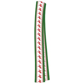 - Cachecol longo de férias com estampa de rena vermelha e acabamento verde.