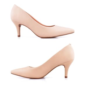 Scarpin Fechado Salto Médio Bico Fino Ultra Confortável Godiva Bege - 38 - Bege