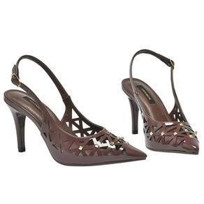 Elegância e personalidade se encontram neste modelo sofisticado de salto fino. Com recortes geométricos modernos e aplicação de pequenos detalhes metálicos na parte frontal, esse calçado transforma qualquer produção com um toque ousado e refinado.