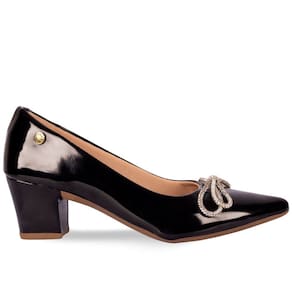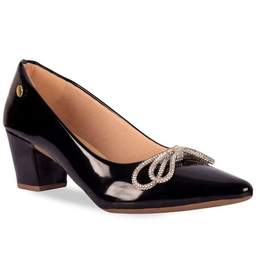 Scarpin Feminino Salto Grosso Verniz Laço Strass