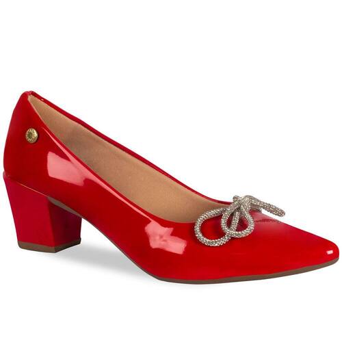 Scarpin Feminino Salto Grosso Verniz Laço Strass - 39 - Vermelho